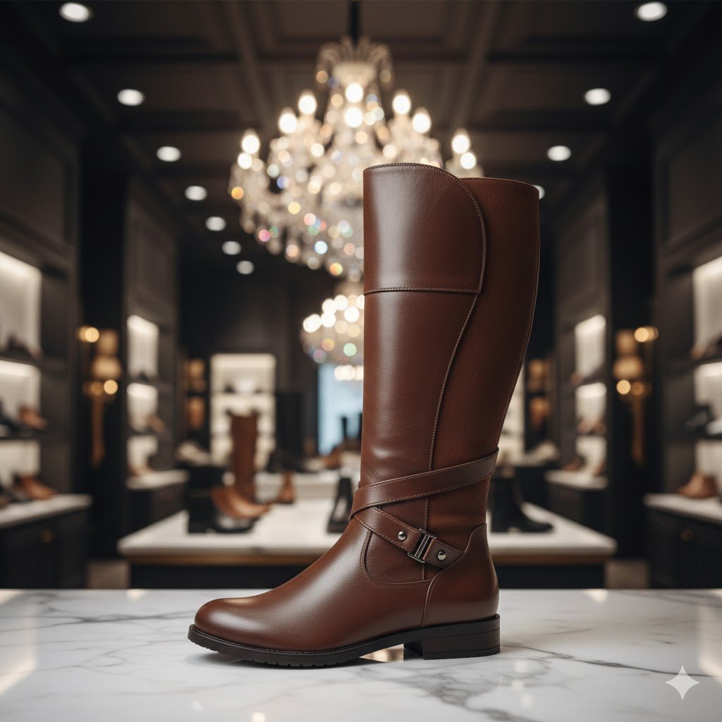 تصميم كلاسيكي يجمع بين الأناقة والراحة، مثالي للإطلالات الشتوية الراقية. مصنوع من جلد فاخر بلون أسود عميق، مع سحاب جانبي وحزام معدني لمسة نهائية أنيقة.
